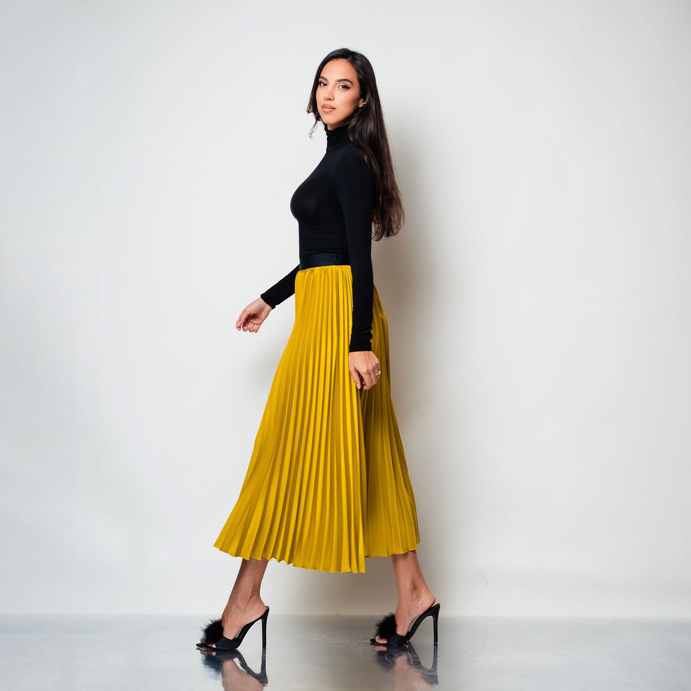 Set corset din tafta neagra si fustă midi plisata din matase Gaya