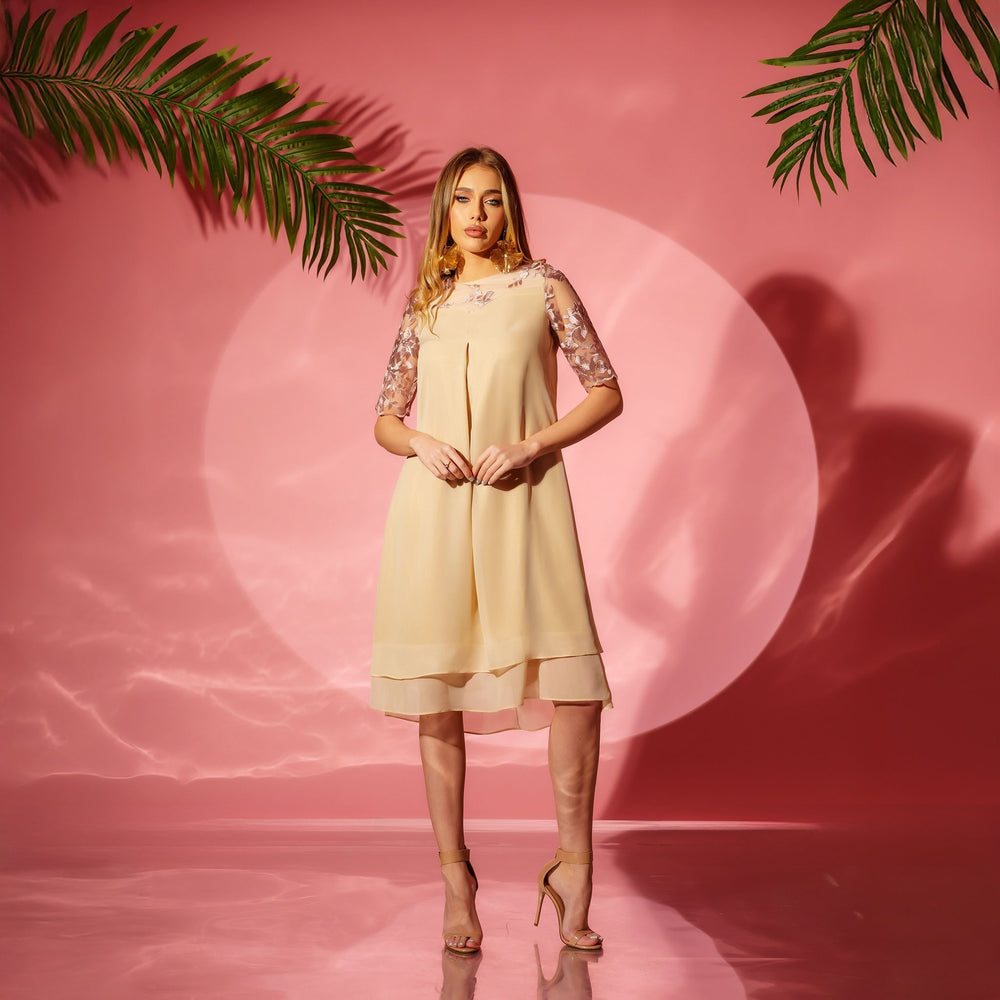 A flowy dress that perfectly blends elegance and comfort, making it ideal for a variety of occasions — from outdoor parties to special events.