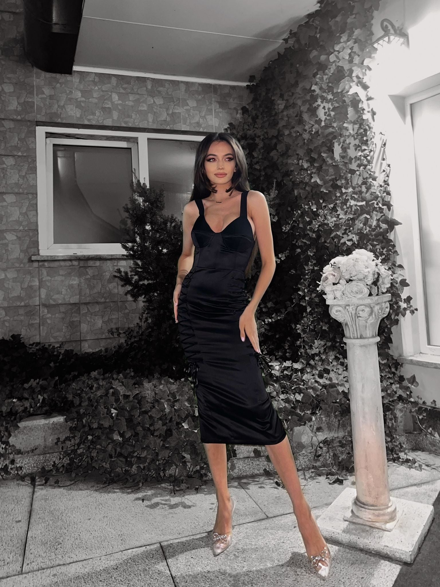 A sophisticated dress that stands out with its structured cups, inspired by vintage lingerie design, offering a sensual and elegant look.